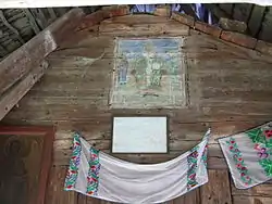Biserica de lemn din Mlăceni. Pictura de deasupra intrării în biserică. Foto: 2009