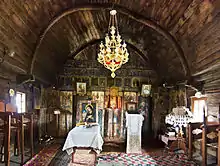 Biserica a fost înzestrată cu iconostas, odoare și mobilier încă de la ridicarea sa. Ușile diaconești sunt semnate de donatorii eventual zugravii lor „Pantelimon Zota” și „Constantin Zota”.[7] Interiorul a fost completat cu o serie de icoane semnate de zugravul Dimitru din Schei între 1865-1866.