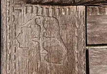 - Se poate face o paralelă cu bardele cioplite pe portalul de intrare de la biserica de lemn din Igoiu, Vâlcea, interpretat ca însemn al meșterului dulgher.