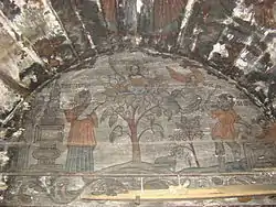 Picturile ce împodobesc pereții lăcașului de cult au fost realizate, potrivit inscripției aflate sub fereastra de miazăzi a altarului, de Popa Alexandru Zugravul, în anul 1792: „Anul Dm 1792/.../(l)una iunie/s-au zugrăvit oltariul prin mine popa Alexandru Zugravul și păcătosul”[3].