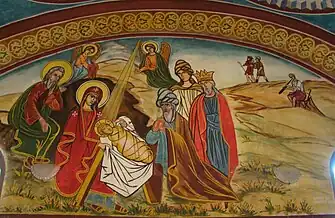Iconostasul construit din zid, placat cu lemn, fără elemente sculptate; icoanele de pe iconostas au fost pictate de către prea cuviosul Alexandru Ghenț, actualul stareț al mănăstirii din Feleac. Pictura a fost realizată în tehnica frescă între anii 1992-1994.