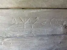 Momentul ridicării acestei biserici este indicat de o inscripție încrestată în peretele altarului: „Acestă mănăstire sau făcut 1712 cându au fostu fometia de mâncau păducele și coje de alun și coje de ulmu și papură și chijdi și coceni de cucu[ruz].” La stânga textului se poate citi „Văleat 7227”, adică anii 1718-19 după Cristos.[1]