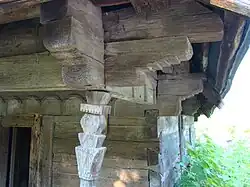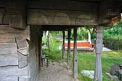 Prispa de pe latura de vest are stâlpii cu fusul de formă tronconică, decorul acestora fiind simplificat, pentru că meșterul și-a concentrat atenția asupra capitelului, cu o variată succesiune de forme[8].