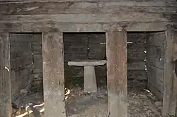 Bârnele, cu îmbinări în coadă de rândunică, înscriu un plan dreptunghiular (nava 6,66 m/4,30 m)[6], altarul fiind decroșat, cu patru laturi, prezentând trăsătura arhaică a unghiului în ax[7].