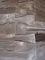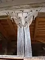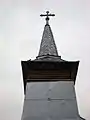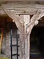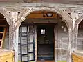 Pronaosul este tăvanit, de pe grinzile superioare, mai solide, se ridică stâlpii turnului, cu un impresionant sistem de susținere, având la o anumită înălțime, obișnuita galerie deschisă, sub coiful octogonal. Acoperișul este unitar pentru tot edificiul, astfel încât căpriorii au fost, pe toate laturile, fixați pe cosoroabele așezate pe capetele artistic suprapuse ale bârnelor cununilor, prelungite și devenite astfel console. La altar, cosoroaba de pe latura nordică și cununa de pe stâlpii târnațului, se prelungesc până la întâlnirea cu cea de pe latura de est, cu care formează un dreptunghi, dând astfel o anume notă de eleganță acoperișului[5],