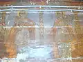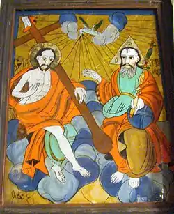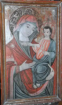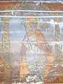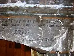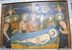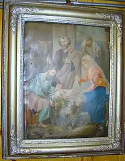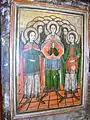 Pictura. Pictura murală a fost realizată în 1793 de Vasile Popovici Zugravul, însă din cauza timpului și a umidității rezultate din nerepararea acoperișului, pictura s-a deteriorat. În prezent este puternic înnegrită, fiind acoperită și de inscripții, zgârieturi până la nivelul staturii unui om. Vasile Popovici este un zugrav încă puțin cunoscut, mai mult din câteva icoane.[6]
