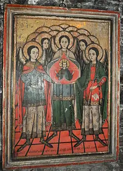 Patrimoniul. Biserica păstrează în patrimoniul său trei icoane împărătești: Iisus Pantocrator, Maria cu Pruncul, Sf. Nicolae, datate la mijlocul secolului al XVIII-lea. Icoana de hram reprezentând Soborul Arhanghelilor a fost realizată în 1769 de către Gheorghe Zugravul.