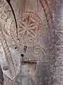 Decorul sculptat. Monumentul prezintă un bogat decor sculptat la nivelul ancadramentelor și al bolților, precum și la brâul dublu al bisericii, întrerupt din loc în loc prin cruci.