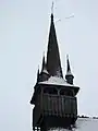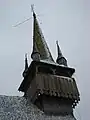 Pronaosul este tăvănit, iar de pe grinzile laterale, din cele patru colțuri ale tinzii, se înalță, bine consolidați, stâlpii de bază ai turnului clopotniță, cu galeria deschisă și parapet în rezalit, cu arcade semicirculare pe toate cele patru părți[3].
