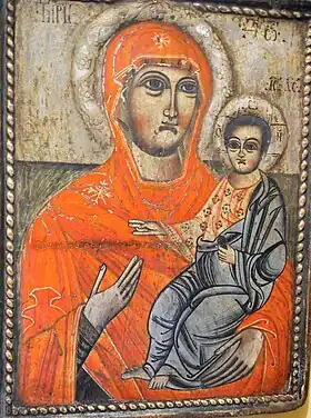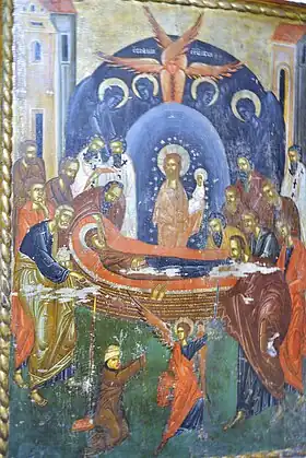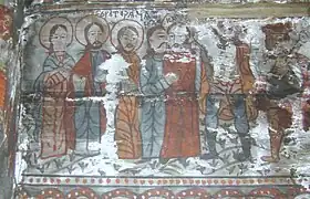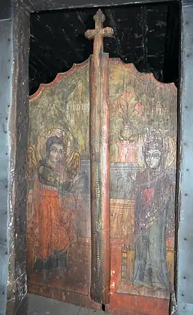 Pronaos: Mironosițele reprezentate cu o cruce în mâna dreaptă și un vas în cea stângă