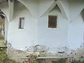 Pereții, de mici dimensiuni, înscriu o navă dreptunghiulară, cu altarul decroșat, poligonal, cu cinci laturi. Deși pereții sunt tencuiți se pot remarca consolele în trepte, de mari dimensiuni, de la altar.