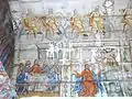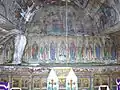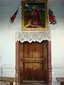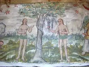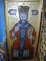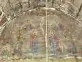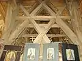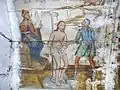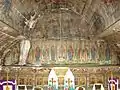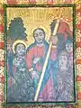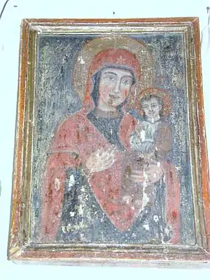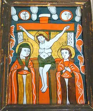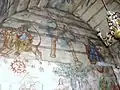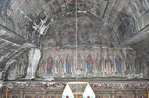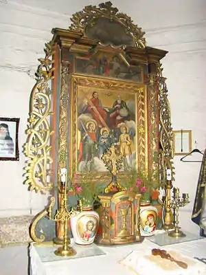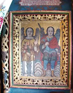 Pictura a fost executată în anul 1811 de Ștefan Zugravul din Șișești și se păstrează fragmentar pe bolta naosului, unde se remarcă imaginea Sfintei Treimi, scene din Apocalips sau din Ciclul Patimilor, într-o paralelă moralizatoare, caracteristică programelor iconografice din bisericile maramureșene; pictura tâmplei și cafasului[2]sunt opera aceluiași zugrav. Aceluiași pictor îi datorăm și pictura unor icoane, între care și cea de pe masa altarului. În sprijinul acestei afirmații vine inscripția aflată pe spatele icoanei de prestol, inscripție ce atestă paternitatea acesteia, respectiv că a fost pictată de Ștefan Zugravul.