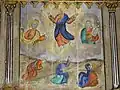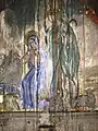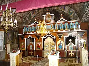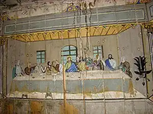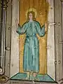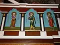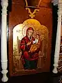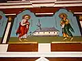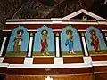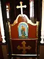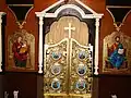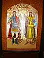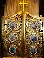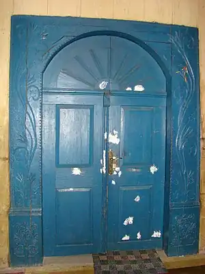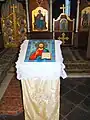 Icoana cu reprezentarea lui Iisus Hristos învățător, cu nimb reliefat, chenare în frânghie, are fondul din zona superioară decorat floral, într-un grund auriu. Pe icoana Maicii Domnului cu Pruncul, înnoitorul, Dionisie Iuga, cantor, mărturisește că a repictat-o gratis, fapt pentru care instanța istorică nu-l acuză de maltratarea operei de artă, primind circumstanțe atenuante în măsura în care aceasta a fost calea păstrării lor.
