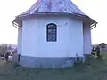 Cercetarea ei duce la concluzia că în anul 1882 i s-au făcut numai lucrări de reparație, cu modificări, data de edificare aflându-se la începutul sec.al XIX-lea. A fost renovată în 1965, când a fost tencuită în exterior și acoperită cu tablă. Pereții, de plan dreptunghiular, cu absida decroșată, poligonală, cu cinci laturi, au fost tencuiți la exterior, tăinuindu-se consolele, ale căror urme sunt evidente. Pe latura de vest au fost adăugate un pridvor închis, cu clopotniță deasupra, și o prispă.