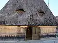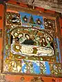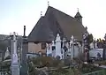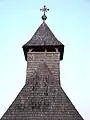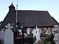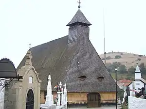Biserica din deal, cu hramul „Adormirea Maicii Domnului”, a fost construită în anul 1766. Din tradiție, aflăm că în apropierea acestei biserici a existat o altă biserică, tot din lemn. Este construită în întregime din lemn de brad, grinzi lungi ce formează pereții naosului și pronaosului. Temelia bisericii este din piatră, iar acoperișul din șindrilă. Înaintea pronaosului biserica are o tindă așezată sub clopotniță, iar clopotnița (turnul) este puțin ridicată peste acoperișul bisericii. Forma bisericii este de corabie, cu altarul rotunjit și de proporții mai mici. Stilul este cel bizantin, caracterizat prin bolta arcuită ca un leagăn. Pictura de pe pereții interiori ai bisericii este aproape în întregime ștearsă sau deteriorată. Pe pereții interiori a fost aplicată o tencuială din gips, în naos și pronaos, fiind lipite mai întâi fâșii de pânză la împreunarea grinzilor, peste care apoi a fost executată pictura. Pictura a fost făcută de mai mulți zugravi între care amintim pe Simion Zugravul din Craiova, care a pictat naosul (1771), Vasile Muntean din Săliște care a pictat iconostasul (1801), și Constantin Zugravul care a pictat altarul (1791). Meșterul construcției nu se cunoaște. Pe peretele dintre naos și pronaos se află pisania (cu chirilice): „Făcutu-s-au această sfântă și dumnezeiască biserică în zilele prea luminatei crăiese Maria Terezia și Iosif al II-lea, prin blagoslovenia răposatului Dionisie Novacovici, episcopul Budei și al Ardealului, și s-au săvârșit la venirea Preasfințitului Domn Sofronie Kirilovici, Episcopul uniților din Ardeal, cu cheltuiala satului, prin facerea de bine care s-au îndurate, prin osteneala și purtarea de grije a cinstitului protopop din Poiana, Oprea Picariu, Iacob Simion, Bucur Ban, Stan Mănițiu. Maiu în 12 leatu 1770 și s-au zugrăvit de Simion Zugravu din Craiova-1771.” Biserica dispune de un patrimoniu mobil de o valoare inestimabilă: obiecte de cult și cărți vechi, icoane pe lemn și sticlă.