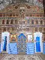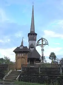 Construcția bisericii respectă stilul maramureșean, remarcându-se prin armonie și echilibru între părțile ansamblului. Pridvorul este susținut de patru stâlpi masivi din stejar uniți prin arcade largi, meșteșugit lucrate și este înconjurat de un parapet înfundat cu scânduri pe verticală și cu balustradă longitudinală sculptată în trepte simple. Acoperișul se pliază frumos peste corpul bisericii, punând în evidență silueta zveltă a turlei înaltă de 30 m.Turla mare are o replică mai mică în partea opusă a acoperișului de pe naos, care face legătura printr-un semicoif cu acoperișul altarului situat cu o treaptă mai jos. Turlele sunt prevăzute cu cruci frumos elaborate, din care nu lipsește Semiluna, simbol al puterii turcești, așezat acolo ca avertisment pentru năvălitorii tătari, care făceau dese incursiuni de pradă în zonă. Fațada are două semicoifuri situate, unul deasupra intrării pridvorului, și altul mai sus la baza turnului principal. Pictura în ulei pe pânză, realizată pe la 1781 de zugravul Ștefan din Șișești, se păstrează parțial, putându-se distinge pe boltă Sfânta Treime înconjurată de îngeri și patru serafimi, iar alături scena cu ridicarea la cer a Sfântului Ilie și Scara lui Iacov. Iconostasul se remarcă prin deosebita frumusețe a ușilor împărătești decorate în reliefuri cu motivul viței-de-vie și a icoanelor împărătești cu rame, ce au sculptate motive florale aurite, pe fond albastru. Fiecare icoană are câte un medalion mic deasupra, ce vine să completeze tematic icoana prin conținutul său imagistic. Frumos realizat este și registrul de sus al tâmplei, unde Isus răstignit este vegheat de Maica Sfântă și Ioan, prezentați în medalioane, în timp ce spațiile libere sunt împodobite cu reliefuri, ce redau vrejuri cu flori și viță-de-vie sub formă stilizată. Alături de icoanele pe lemn, în biserică se mai păstrează și un potir frumos ornamentat.