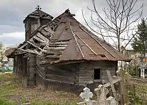 Structura originală este ridicată din bârne fasonate dintr-un singur lemn, păstrându-și inima în ele. Bârnele sunt încheiate la capete în cheotori netede, bisericești, în coadă de rândunică. Cheotorile sunt întărite ulterior, cu cuie lungi de fier, probabil pentru a reduce efectele tasării spre răsărit a construcției.