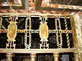 Numeroasele elemente exterioare de decor - șindrila zimțuită, ramele traforate de la ferestre – cândva pictate – la care se adaugă zăbrelele contorsionate în formă de cârcei de vie, „ochiurile” în faguri ale geamurilor, crucile de pe turn și de pe coama acoperișului – dau un plus de atractivitate și încântare. Crucile au fost lucrate cu ciocanul pe ileu. Pe cele trei brațe laterale au numeroase elemente simbolice și de decor (soare, semilună, clopoței) mărturisind o preluare barocă, de extracție populară, din vremea ortodoxiei. Acestea sunt produsul mâinilor unor fauri locali, între care trebuie menționat bătrânul Mihai „Căuaciul”, care trăia în sat[27].