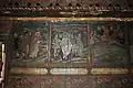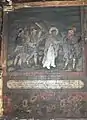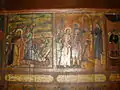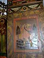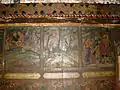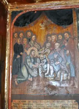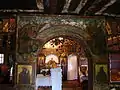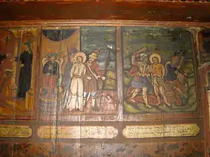 Decorația interioară, de factură cultă, poartă amprenta unui talent deosebit. Ea cuprinde absolut întreg ansamblul. Pereții au fost chituiți până aproape de înălțimea umărului unui om și dați cu vopsea de ulei de in într-o singură culoare. De acolo în sus, totul a fost împărțit în chenare și acoperit cu scene biblice sau chipuri de mucenici. Folosirea intensă a culorii albe a pulsat multă viață într-un câmp coloristic puțin avantajat de lumina micilor ferestre. Portretele sfinților sunt bine individualizate. Dar ceea ce dă măsura adevăratei măiestrii e suita de tablouri realizate pe linia ferestrelor înfățișând patimile lui Cristos. Scenele sunt de un mare dinamism și expresivitate. Invită la profundă meditație textele de sub aceste scene. Ele au fost scrise în limba română, cu chirilice, dar și în limba latină. Departe de a fi doar o vanitoasă demonstrație de erudiție a pictorului sau a prim-coratorului, aceste inscripții reliefează că răstocenii au ajuns la cunoașterea originii lor romane și că în străfunduri creștea, spre deșteptarea de la 1848, conștiința lor națională. În momentele de reculegere duminicală, ei au adunat de aici tăria de-a lupta pentru limba și legea lor strămoșească, pentru a fi ei înșiși pe un pământ trudit din moși-strămoși[30]