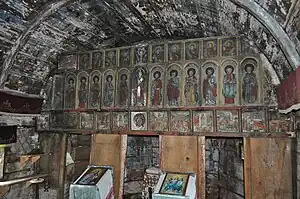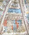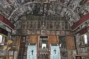 În anul 1812, zugravul Pavel Dumbrăveanu a pictat pereții interiori, respectivul decor, asupra căruia s-a intervenit ulterior, găsindu-se în stare proastă de conservare[3]. Mai bine păstrată este catapeteasma, realizată de același zugrav.