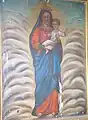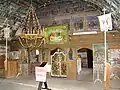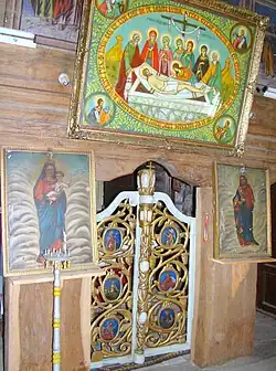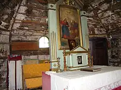Interiorul are distribuția clasică: pridvor, pronaos, naos și altar. Pronaosul are pardoseală de scândură și tavan drept. Pe pereți sunt urme de pictură, fiind vizibile motivele vegetale. Intrarea în naos are un ancadrament simplu. Pardoseala este din lespezi de piatră. La vest, cafasul a fost refăcut în totalitate cu ocazia restaurării din anii 1960-1962. Nava are bolta semicilindrică, în consolă. În absida altarului se intră pe trei uși, care au partea superioară în formă de arc. Altarul are boltire semicilindrică și calotă sferică, iar pardoseala este din lespezi de piatră. Pictura a fost realizată în anul 1834, cum ne spune o inscripție în chirilică și latină aflată în proscomidiar („Înnoirea acestei sfinte biserici consacrată în onoarea Sfântului Nicolae, de importantul bărbat, curatorul principal Iosif Raț, ridicată spre slavă”). Ea a suferit un avansat proces de degradare, păstrându-se doar urme în cea mai mare parte.
