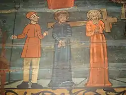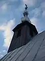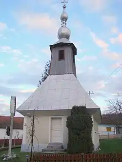 Biserica de lemn „Sfântul Nicolae" este construită în stil ardelenesc, în formă de corabie, pereți din bârne de stejar, acoperiș din tablă zincată. A fost ridicată probabil în primul deceniu al secolului al XIX-lea, iar în anul 1932 a fost renovată. Inițial turnul avea coiful piramidal, continuat cu o săgeată ascuțită, marcată la bază de un inel ornamental. Lucrările din 1932 au schimbat săgeata cu două globuri suprapuse, pereții au fost tencuiți, ferestrele mult mărite și învelitoarea de șindrilă înlocuită cu una de tablă. În interior biserica este căptușită cu scânduri de brad, inclusiv bolta peste care a fost lipită pânza de cânepâ și a fost executată pictura în ulei. În spațiul interior, pe lângă cupola de scânduri pe o bază pentagonală a absidei, se remarcă în mod deosebit pictura de o foarte bună calitate, cu accente realiste și umoristice. Pe bolta naosului „Sfânta Treime”, „Maria”, „Constantin și Elena”, cei patru evangheliști la colțuri, „Sfântul Ilie”, „Înălțarea”, serafimi și heruvimi; cupola din altar nu are pictură figurativă; la iconostas narația este mai amplă decât la alte biserici de lemn: „Hristos”, „Maria”, „Sfântul Nicolae”, „Sfântul Gheorghe”, proroci și apostoli, „Iisus tronând”, iar sus nelipsita scenă a „Răstignirii” lui Hristos. Pe pereții naosului se înșiră scenele legate de viața lui Iisus: „Trădarea lui Iuda”, „Sărutul lui Iuda”, „Iisus față în față cu Ana”, „Jertfa lui Avram”, „Iisus înaintea lui Caiafa”, „Iisus înaintea lui Pilat”, „Iisus în închisoare”, „Ecce Homo”, „Încununarea cu spini”, „Purtarea crucii”, „Luarea de pe cruce”. În tindă este reprezentată "Boșorcaia", o femeie înzestrată cu duhul rău al furtului de lapte de la vacile oamenilor, atârnând deasupra flăcărilor iadului, cu găleata de lapte legată la gât; morarul are legată de gât piatra de moară și „vaităul" cu care a luat uium necinstit; crâșmarului i s-a legat de gât butoiul și sticluța; Sfânta Marina îl prinde în Joia Mare pe un drac și îl bate cu maiul de la toacă; deasupra focului stau și „biraiele”, slujbași necinstiți care fac judecată strâmbă. Alături de reprezentările figurale, încadrate adesea în chenare cromatice distincte, ca elemente complementare ale picturii se înscriu și vrejurile, motivele stelare ale cerimii naosului și liniile meandrice intercalate cu alte motive geometrice. Alături de icoanele pe sticlă, provenite din centrul de iconari de la Nicula, se mai află la această biserică de lemn și o icoană pe sticlă de factură catolică ajunsă aici probabil prin intermediul rutenilor uniți stabiliți în număr mare în localitatea învecinată Sâmbăta la sfârșitul secolului al XVIII-lea și începutul celui următor.