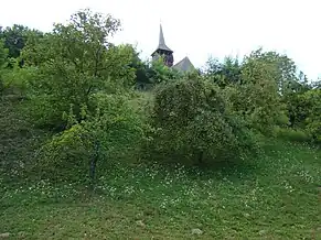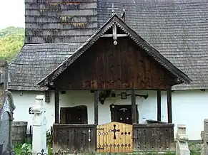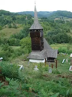 Biserica a fost mutată de pe un deal alăturat pe locul pe care se află în prezent, putând fi observate în elementele structurale de lemn fostele decroșuri de îmbinări. Cu puțin timp în urmă biserica a fost trăsnită, paratrăsnetul dovedindu-se ineficient. Astfel biserica a fost cuprinsă de flăcări la interior; incendiul fiind depistat la timp, avariile au fost minore. A fost afectat peretele dintre naos și pronaos, iar o cruce de lemn aflată pe acest perete a fost ocolită de flăcări și de fum, rămânând intactă.