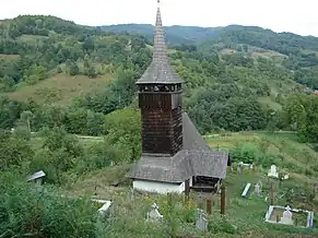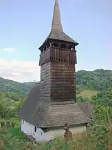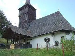 Biserica a fost construită în anul 1780 din bârne de stejar. Bârnele din pereți au fost cioplite din bardă, lăsând între ele multe spații libere care au necesitat tencuirea pereților în exterior. Biserica este de tip sală, având o împărțire tipică: pronaos, naos, altar. Primele două spații au intrări directe din exterior prin uși joase, ce permit intrarea în edificiul de cult numai cu capul aplecat. Prima cameră e destinată femeilor, iar cea de-a doua, în imediata apropiere a zonei altarului, e destinată bărbaților. În biserica bărbaților a existat un cor ce ulterior a fost dărâmat, astfel biserica devenind mai spațioasă și mai luminată. Biserica a fost inițial acoperită cu șindrilă ce treptat s-a deteriorat; în anul 1927 turnul a fost acoperit cu tablă, iar în 1965 și navei i-a fost schimbată învelitoarea.