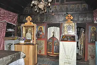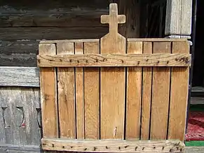 Prispa de pe latura de vest a fost adăugată în secolul XIX; are fruntarele în acoladă, stâlpi cu brățări la capitel și bază, și o clopotniță scundă, cu foișor[5].