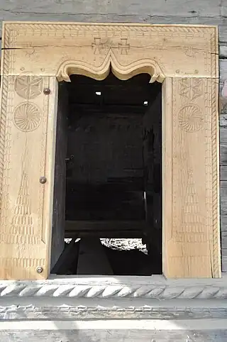 Accesul în interiorul lăcașului este asigurat de ușa de pe peretele sudic al pronaosului, ușă încoronată de un ancadrament bogat, ornat cu brâu dublu.