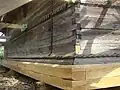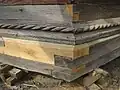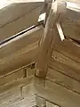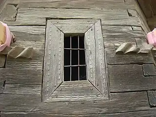 Pereții edificiului, înălțați pe o temelie de bolovani de râu, au fost realizați din bârne groase de stejar, încheiate în sistemul vechi de „coadă de rândunică”. Altarul este iluminat de o mică fereastră montată în axul estic al absidei, iar pe latura sudică, în decroș, o ușă face legătura interiorului cu exteriorul.