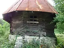 Pereții din lemn de stejar sunt așezați pe un soclu de piatră în panta terenului și înscriu o navă dreptunghiulară, cu dimensiunile 7,51 m/4,85 m[3].