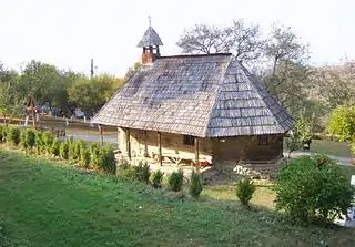 Biserica de lemn „Sfinții Arhangheli-Mănăstirea” din Sânmărtinu de Câmpie, comuna Râciu, județul Mureș, foto: octombrie 2009.