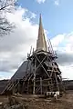 Având în vedere că pisania din dreapta surprinde anul pictării, ridicarea construcției trebuie că a avut loc mai devreme în timp. Preotul Vasile Ioviță, pe baza unei citiri mai vechi a pisaniei din stânga de către un preot local, indică anul 1778 ca an al edificării bisericii.[2] Aceasta nu ar surprinde, dat fiind exemplul aproape identic al pisaniei din biserica de lemn din Stâna. Nu se cunoaște meșterul dulgher. Întreaga construcție este înălțată din lemn, care se găsea în cantități mari în pădurea din apropiere.