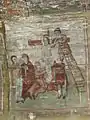 Zugravii și comandatarii picturii murale sunt surprinși în două pisanii scrise cu penelul. Pisania din stânga altarului, la proscomidie, ne transmite următoarele: „Această sfântă biserică sau zugrăvit de mâna mea Nicolae Bădău din Lupșa Mare în zilele [pre î]nălțatului împăratului nostru Franțișcuș, și sa gătat la anul 1811 luna iulie.”[3] A doua pisanie se află în naos, peste intrarea sudică, și a fost scrisă spre cinstirea întregii comunități: „Această sf[â]ntă biserică sau zugrăvit cu ajutorul lui D[u]mnezeu la anul 1811 cu cheltuiala a tot satul Sălciva, fiind parocu Ion Gheorghe ...stăpia Gligore Samsen Las și învățătoriu Cost[an]di[n] Popovici, giurat Cetină Ghiorghie, bumeț Cetină Lazăr, Hodor Iancu, Popă Ianăș, boldicier Urs On.. ... Filip, Chitor Pascu, Chitor Carpăn, Drăgan Alicsandru și sau gătat în luna lui iulie în 26 ... în zile[le] prea luminatului împăratului nostru Franțișcuș sfârșit și lui Dumnezeu laudă, Nicolae Pătruț.”[4]