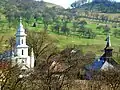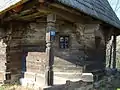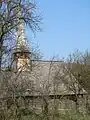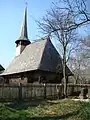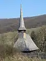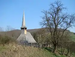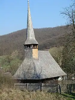 Biserica de lemn „Sfinții Arhangheli” a fost construită în partea de miazănoapte a satului. Construcția, ridicată pe o fundație de piatră, este de dimensiuni modeste (lungime 10,50m, lățime 4,90m). În plus se disting cele trei încăperi: pronaosul, naosul și altarul poligonal decroșat. Deasupra pronaosului se înalță turnul prismatic, încoronat cu un coif tronconic. În partea de sud se află ușa de acces, mărginită de usciori simpli, dar masivi. Ușa de intrare în naos prezintă un frumos ancadrament decorat cu motivul funiei, al crucii și al rozetei. În interior pronaosul este tăvănit, iar naosul și absida altarului au fost acoperite cu câte o boltă semicilindrică. Pictura murală s-a păstrat în condiții mulțumitoare. Scenele au fost realizate la sfârșitul secolului al XVIII-lea de Alexandru Popovici Zugravul (activ în jurul anului 1790). În absida altarului. pe latura estică, se află inscripția: „zugrăvitu-s-au acest oltari prin îndemnarea și osârdia preotului Oanca ...Alexandru Popovici Zugravul.