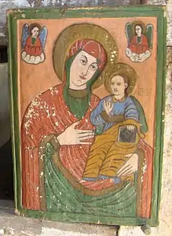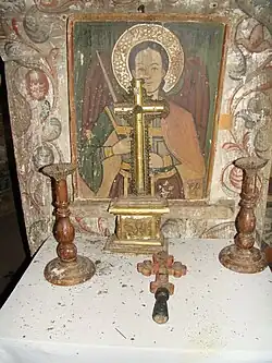 În patrimoniul bisericii se păstrează câteva icoane pe lemn din secolul al XVIII-lea (Arhanghelul Mihail, Maica Domnului cu Pruncul, Deisis), în timp ce mare parte din icoanele pe sticlă au ajuns la Cluj, în colecția Arhiepiscopiei Ortodoxe. Ușile împărătești, tot de secol XVIII, înfățișând Buna Vestire, sunt ușor înnegrite și deteriorate. Biserica posedă și câteva tipărituri din secolul al XVIII-lea. În interior se mai păstrează o frumoasă scară dintr-o singură bucată de lemn, pentru accesul în pod. Clopotul din turn are următoarea inscripție: „ANNO Domini 1794”[2].