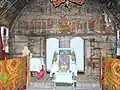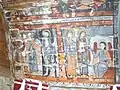 În naos, pe pereții laterali, reprezentări ale mucenicilor, iar pe bolta semicilindrică, scene din minunile și patimile lui Iisus.