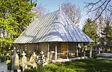 Biserica se păstrează în cimitirul așezării, înconjurată de cruci de lemn și de piatră precum și stâlpi funerari. La intrarea în incinta cimitirului stă o pitorească poartă cu foișor deasupra, care a servit probabil și de clopotniță.