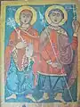 Icoană „Iisus binecuvântând”, în medalioane „Maica Domnului” și „Sf. Ion”