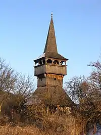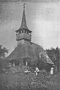 Publicată într-o lucrare dedicată clopotnițelor și bisericilor de lemn din Transilvania, imaginea vechii biserici de lemn este comparată cu imaginea clopotniței reformate maghiare din aceeși localitate. Biserica de lemn, construită în anul 1864 avea hramul Pogorârea Sfântului Spirit[2].
