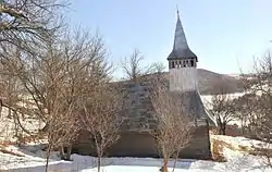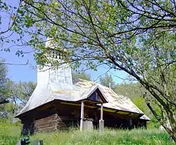 Nu se cunoaște cu exactitate vechimea acestei biserici (nu există nici o inscripție pe grinzi, iconostas sau icoane). Ea poate fi apreciată la circa 200 de ani. Fostă biserică greco-catolică, ea a trecut în 1948 în folosința ortodocșilor. Biserica a fost pictată în jurul anului 1847, veșmântul pictat, de o bună calitate artistică, fiind distrus în cea mai mare parte. Doar în altar și în pronaos se mai disting câteva scene. E posibil ca pictura să fie realizată în mai multe etape: pe iconostas descrierile imaginilor sunt în caractere chirilice, pe bolta absidei altarului în latină, iar pe cea a naosului citate din Evanghelie multilingve: în latină, germană, maghiară și în caractere chirilice.