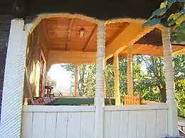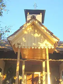 Se remarcă prin măiestria lucrului în lemn: îmbinările iscusite în coadă de rândunică, consolele în formă de cap de cal, cioplite și ornate, stenapii, cornișele, cosoroabele cu crestături[4].