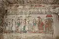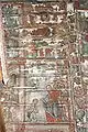 Pe poalele bolții, dispuși simetric, sunt redați cei patru evangheliști. Același registru conține minunile lui Iisus (precum Vindecarea orbului și Vindecarea slăbănogului),[9] reprezentările Cuvioșilor Macarie și Pavel, Sf. Mucenici Onufrie și Zosima, Proorocul Ilie, episoade din viața Sf. Dimitrie (Lupta lui Nestor cu Lei) și Nașterea fecioarei. De asemenea întâlnim alte scene precum Scara lui Iacov și Arca lui Noe. Pereții naosului sunt decorați cu scene care oglindesc Patimile lui Iisus. Se poate observa că pictorul nu a avut în vedere o anumită ordine de distribuire a scenelor.
