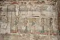 Tâmpla bisericii este pictată direct pe peretele estic al naosului. Ea este constituită din patru registre, prezentând multe analogii cu biserica din Corund. Primul registru este format din cele patru icoane împărătești. Al doilea este dedicat icoanelor prăznicare. Cel de-al treilea registru conține reprezentările apostolilor, iar în centru imaginea lui Iisus Arhiereu. Ultimul registru înfățișează Răstignirea lui Iisus, flancată de câte 6 medalioane cu reprezentări ale proorocilor.
