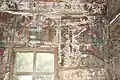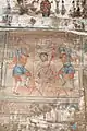 Peretele vestic conține motive decorative cu reprezentări de pești, imagini similare întâlnindu-se și în biserica învecinată din satul Corund. O reprezentare foarte interesantă, nesemnalată până acum în literatura de specialitate, este imaginea stemei Ungariei, redată de două ori, deasupra ferestrelor de pe latura nordică a naosului.