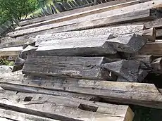 Elemente din biserica de lemn din Baia de Fier - Sohodol pentru reconstrucţia ulterioară. Foto: 2009