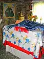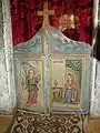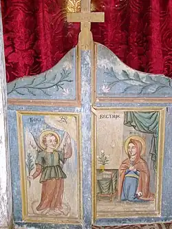 Din păcate, tergiversarea lucrărilor de reparație a acoperișului s-a soldat cu dispariția bogatului decor pictural de odinioară, executat, potrivit pisaniei tâmplei „în anul 1829, cu cheltuiala satului, fiind ctitori Mogoș Petru, Zbeg Gheorghe, Băcian Enișca, Gheărgă Pătru, Cosma Moisie”. Analiza programului iconografic îl indică drept autor pe unul dintre zugravii atestați la Rădulești. Ușile împărătești sunt atribuite aceluiași meșter iconar anonim care a lucrat la înfrumusețarea edificiului din Almaș-Săliște[2]. Recensămintele ecleziastice din anii 1733 și 1750, precum și harta iozefină a Transilvaniei (1769-1773), atestă existența unei înaintașe; doar conscripția din 1805 înregistrează lăcașul actual[3].