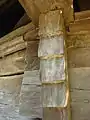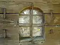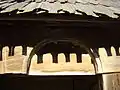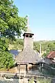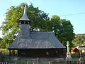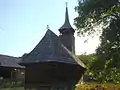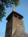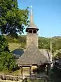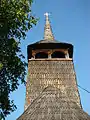 Turla bisericii care nu depășește 13 m înălțime, este prevăzută cu un foișor modest, cu câte două arcade laterale, sprijinite pe stâlpi, ce se îmbină în partea superioară în același stil specific, cu arce unite de un ic central sub formă de potir, element simbolic de esență creștin-ortodoxă. Cununa care susține șarpanta prezintă o particularitate, fiind susținută de icuri crestate în cinci trepte, fixate în cuie de lemn, lateral, pe colțuri și centru, imitând îmbinările în trepte a grinzilor superioare în scopul evazării streșinii acoperișului, o soluție ingenioasă a meșterilor locali.