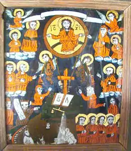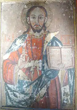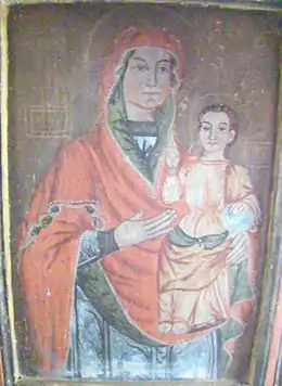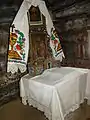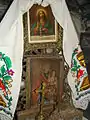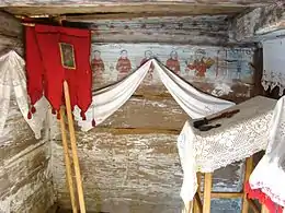 În Altar se păstrează chipurile în ținută de Arhiereu ale Sf.Ioan, Sf.Vasile, Sf. Grigore, Sf. Ignatiu și Sf. Laurențiu. Tot în Altar se mai păstrează icoana Maicii Domnului cu Pruncul, într-o ramă largă și aerisit ornamentată cu vrejuri și medalioane șterse și un chivot de formă dreptunghiulară, frumos ornamentat[4].